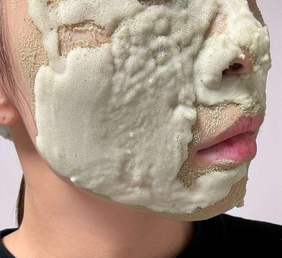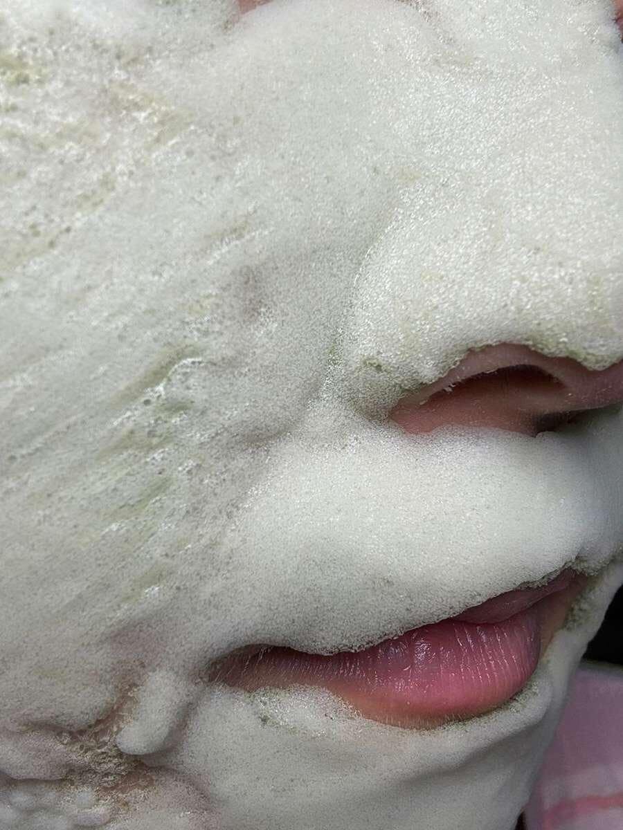 2. 3~5分後、バブルが十分に膨らむと、軽くバブルをマッサージしてぬるま湯でしっかり洗い流してください。